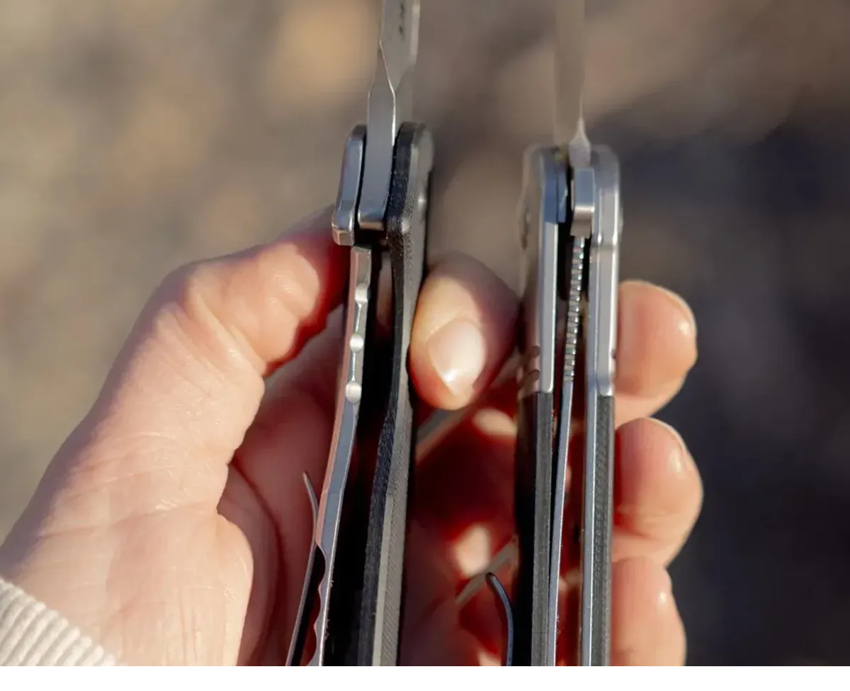 4. Gyártói szerviz: Ha a bicska új és a hiba zavaró: érdemes élni a garanciával, sok gyártó (pl. Benchmade, Spyderco) kifejezetten foglalkozik blade centering beállítással.