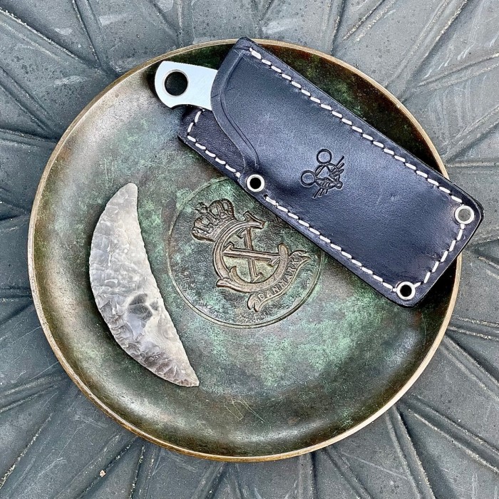 A bőr tok stabil hordozást ad, és jól illik a kés klasszikus megjelenéséhez.