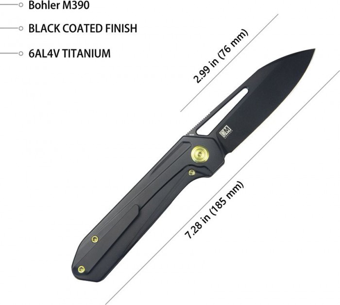 M390 pengével és titánium markolattal.