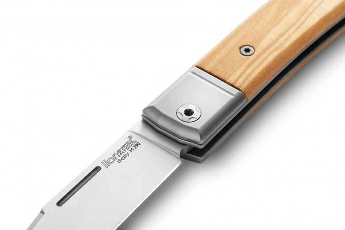 01LS145, egy nagyszerű bicska, M390 pengével és olajfa/titánium markolattal.