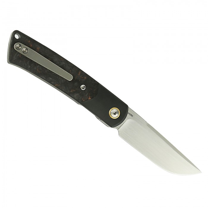 egy nagyszerű bicska, M390 pengével és 6AL4V titánium/szénszálas markolattal.