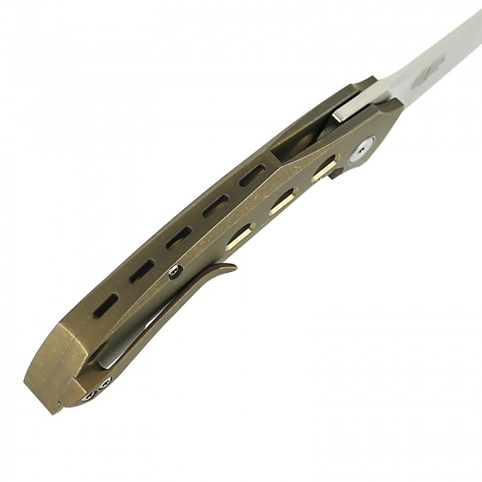 késgyártás egyik legismertebb képviselője. A Reate Velocity Framelock Bronze REAVEL4,